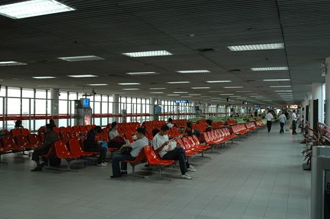 旅客从二楼大厅中门而入,两侧分别有4个售票区,大厅内设置两处行李打包处。